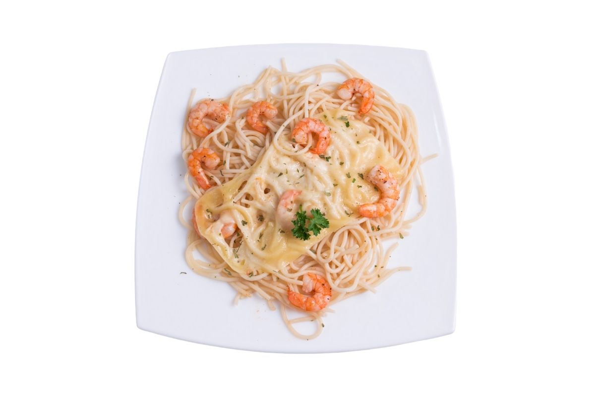 100 gr de pasta 70 gr de camarón, elaborado con crema y queso manchego.