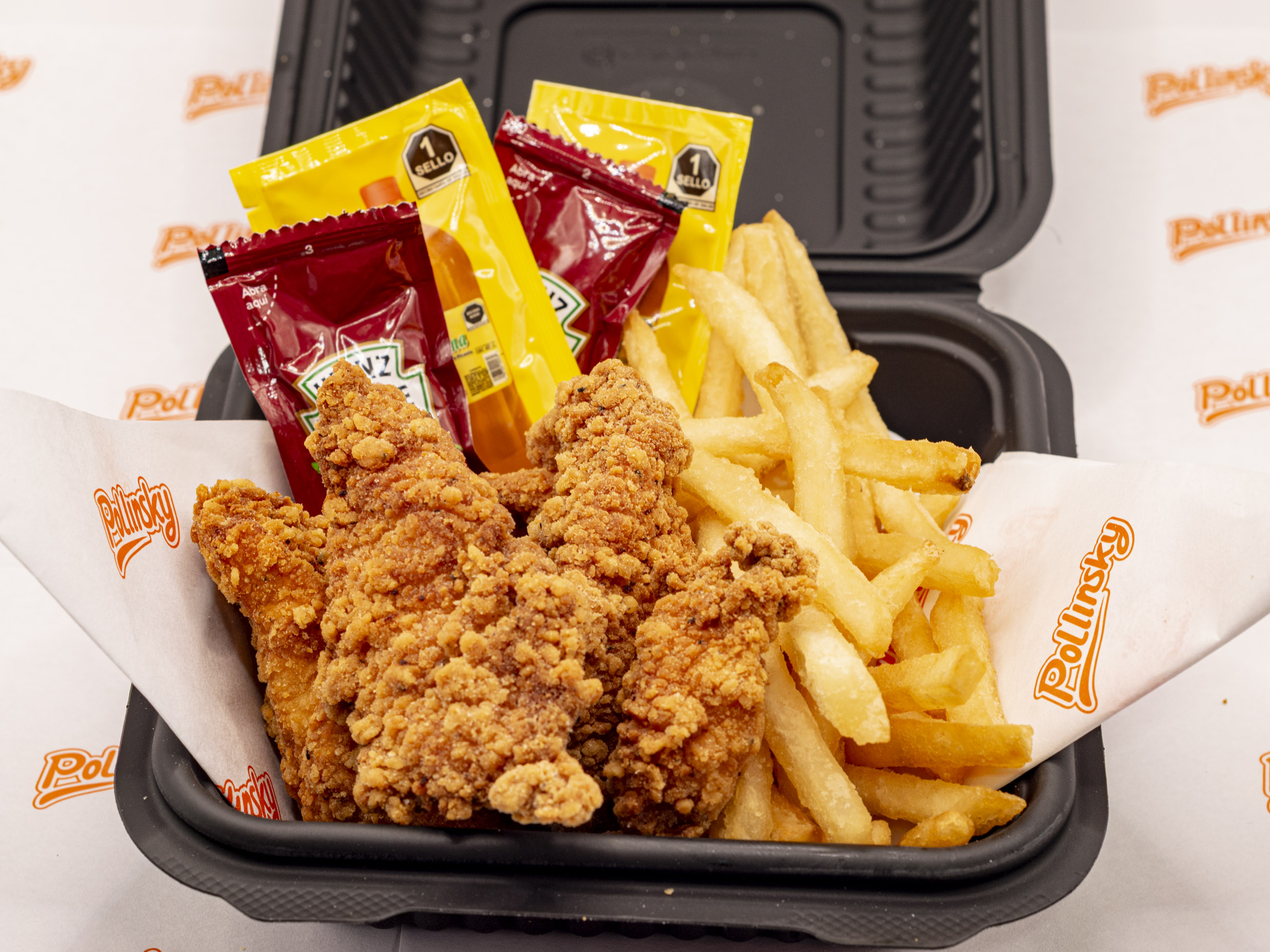16 Piezas de pollo cruji más 3 complementos grandes a elegir. Puré, ensalada o sopa. Incluye 4 bolsitas de salsa.
