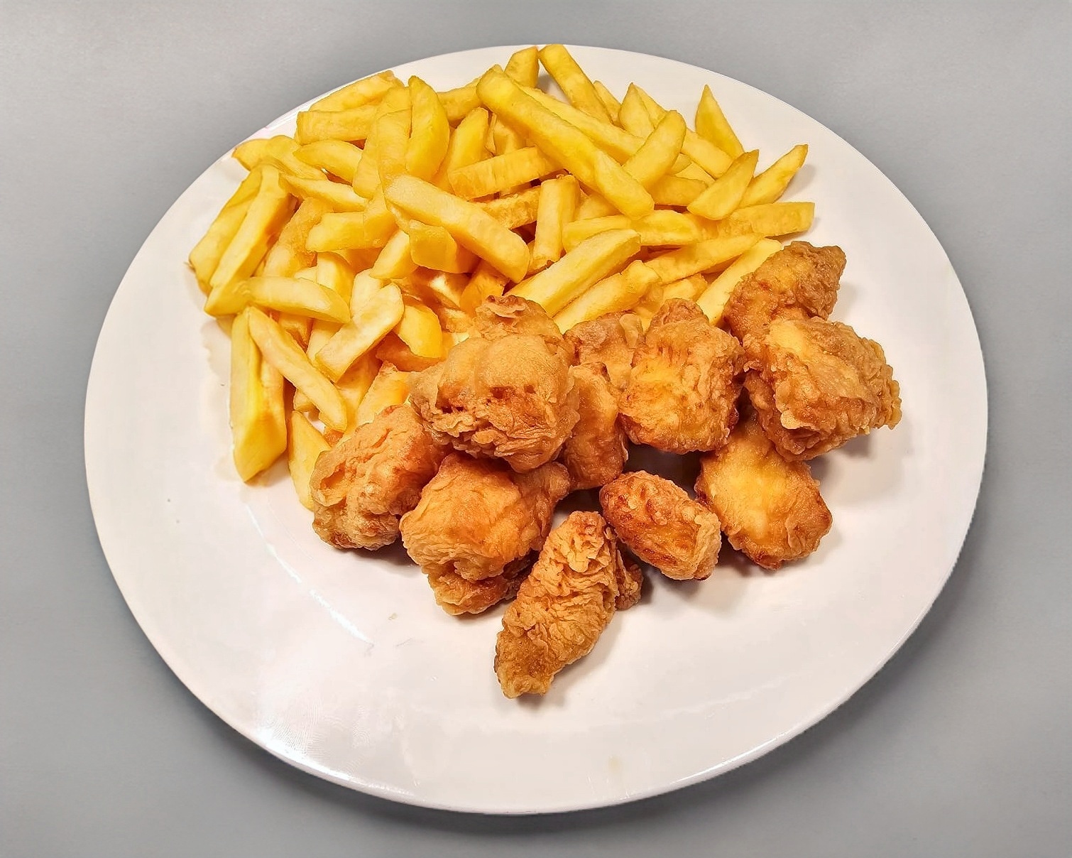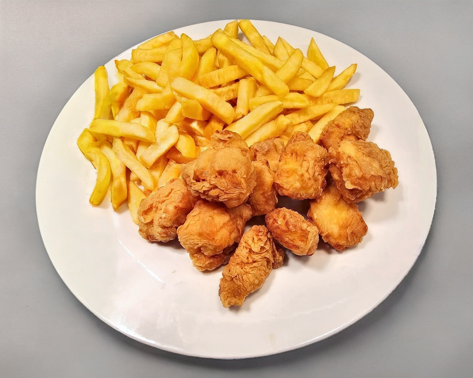 Nuggets de pollo con papas fritas.