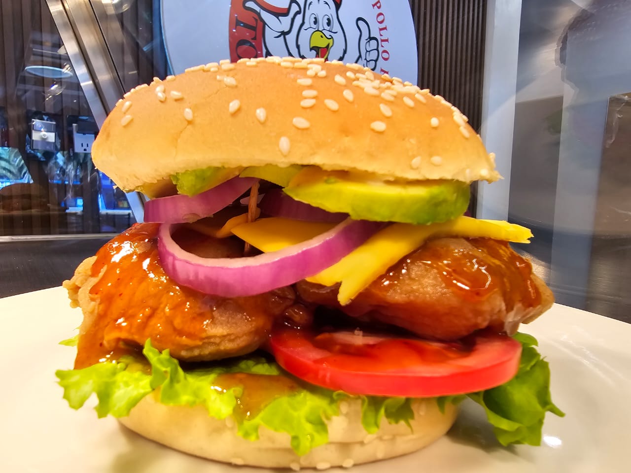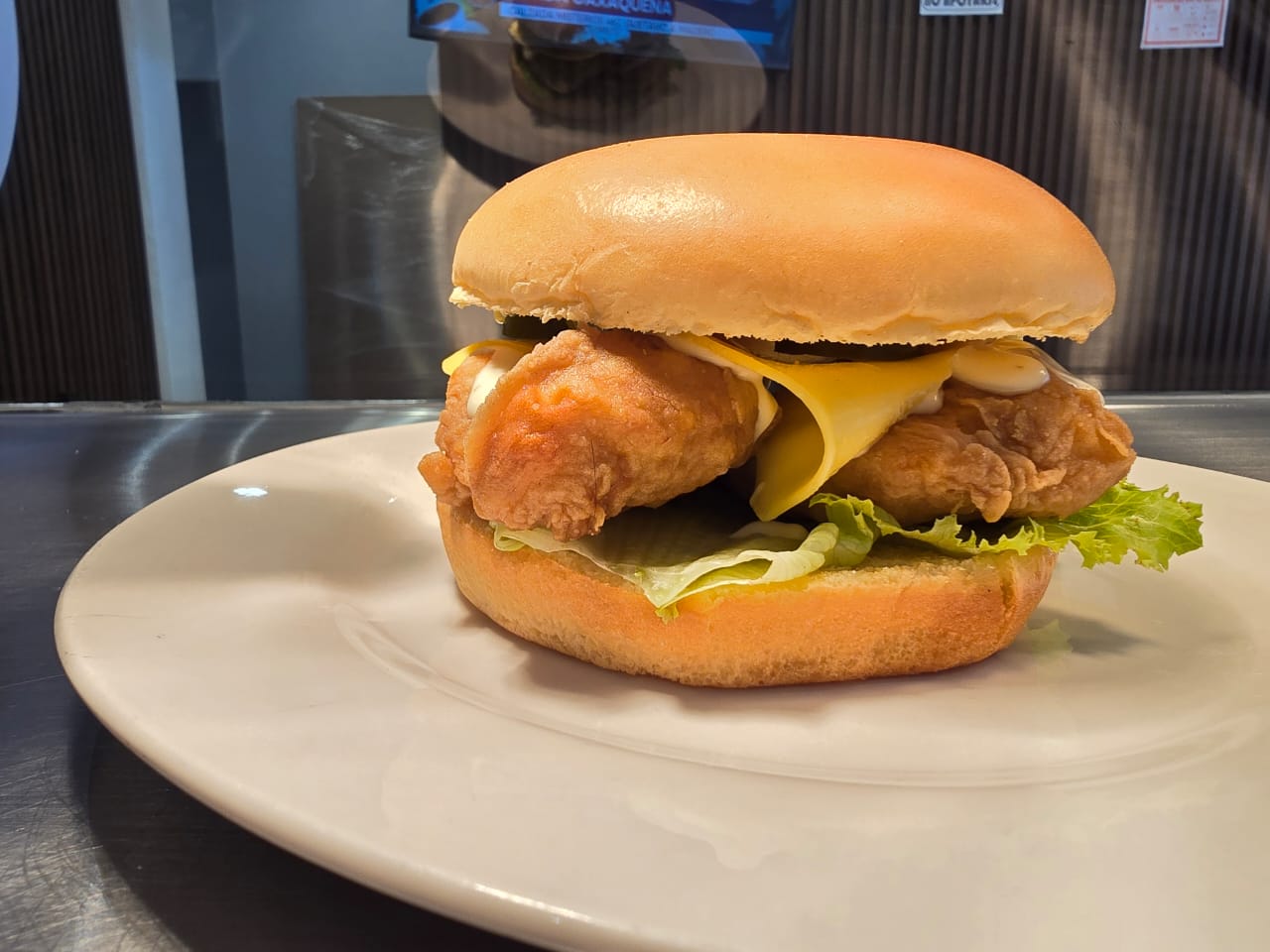 EXQUISITA HAMBURGUESA DE PECHUGA, JUGOSA POR DENTRO, CRUJIENTE POR FUERA