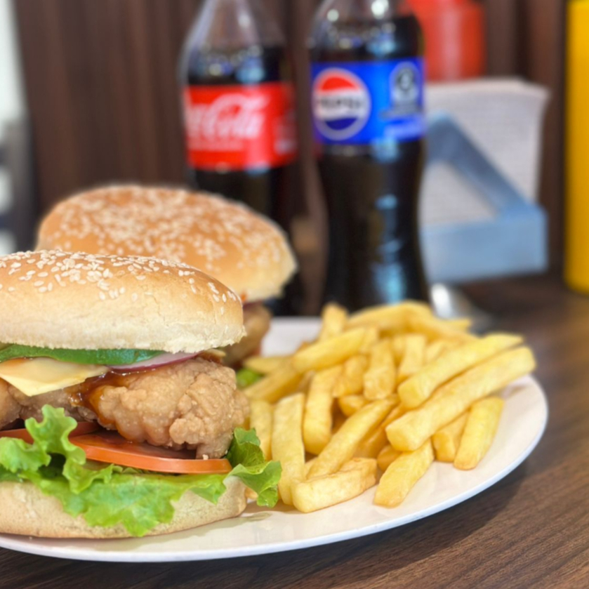 Hamburguesa de Pechuga con Papas y Refresco