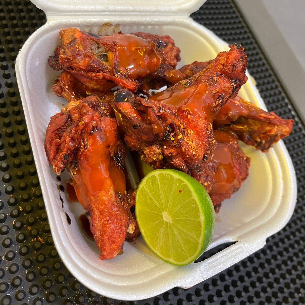 5 alitas premium salsas negras jugo magi,valentina,salsa inglesa,tajin y limon