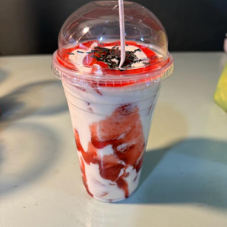 Exquisitas fresas con crema de 500 ml con crema preparada de forma artesanal y una capa de chispas de chocolate