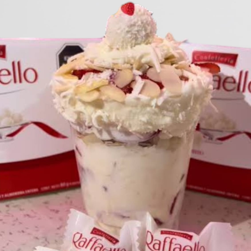 Deliciosa crema estilo rafaello con fresas de buena calidad (VASO DE 16 OZ)