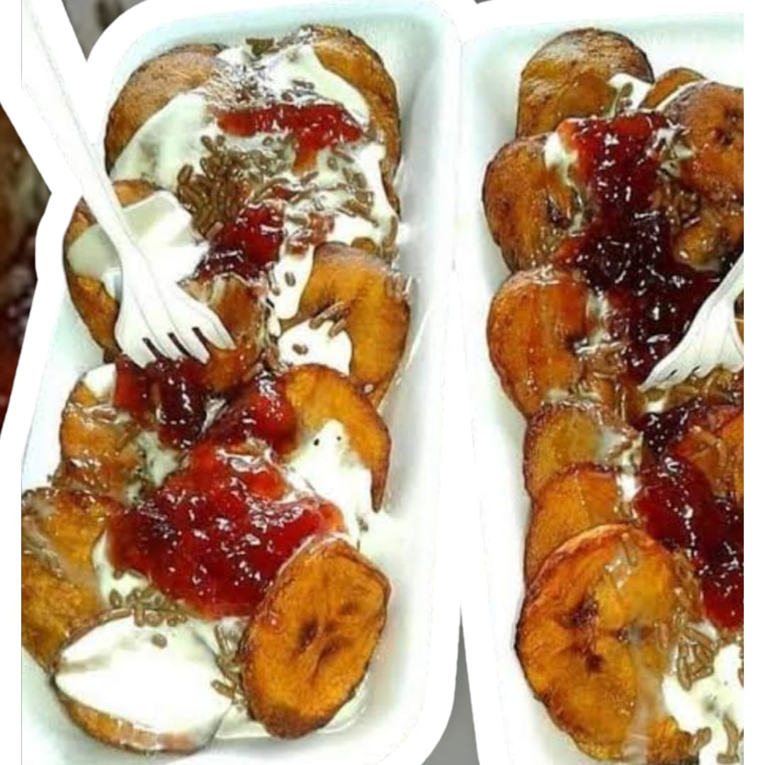 Platanos Fritos con jarabes y toppings a aelegir