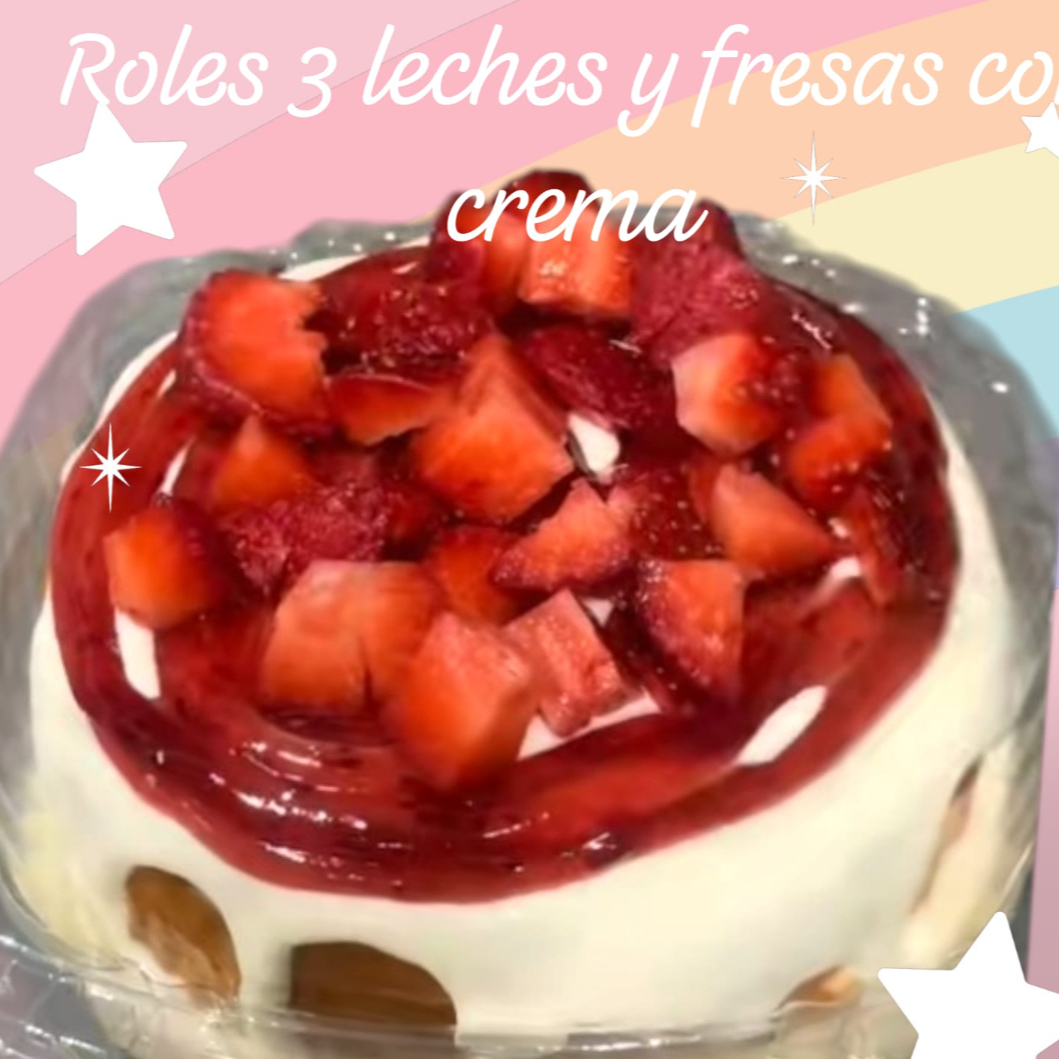 Delicioso rol de tres leches con la exquisita combinación de fresas con crema