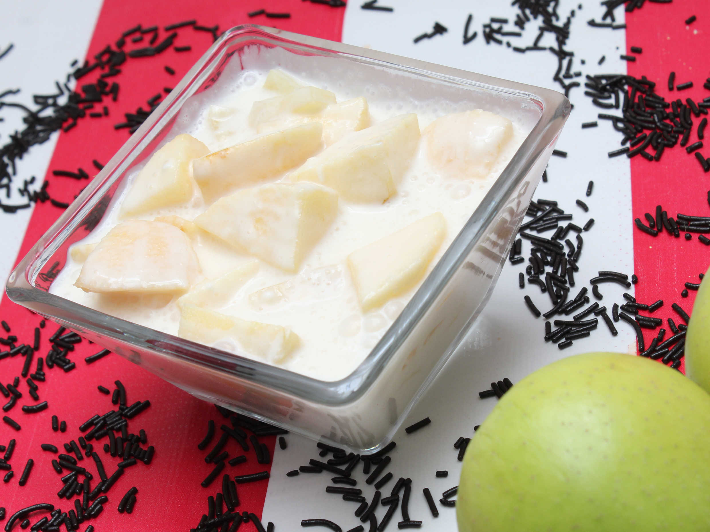 Vaso de 12 oz. trozos de manzana con piña, nuez y pasa.