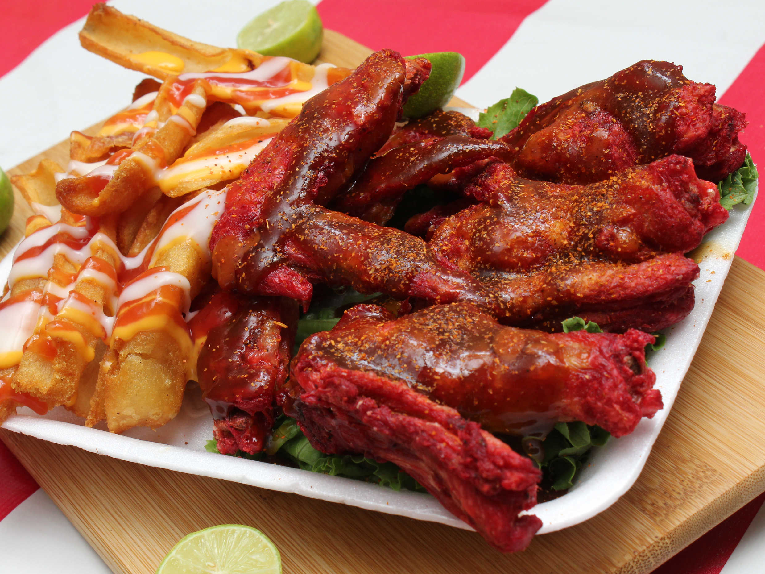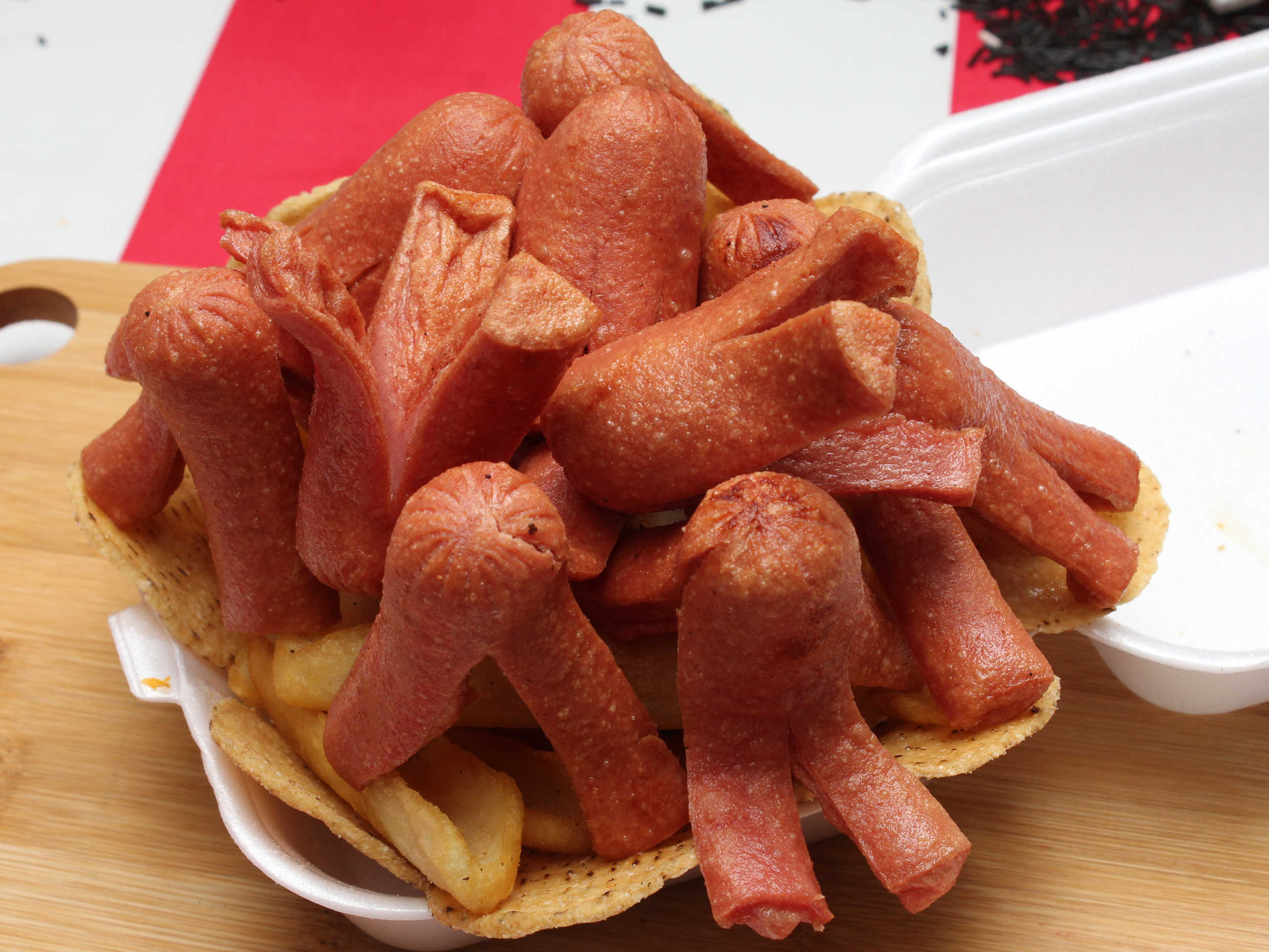 200 Gr. papas a la francesa, salchichas fritas y nachos.