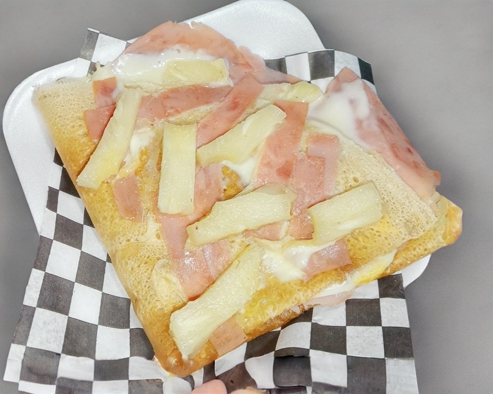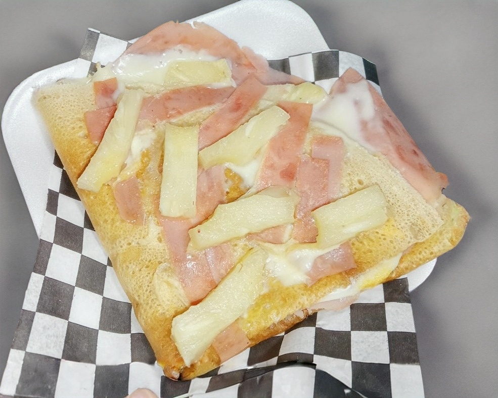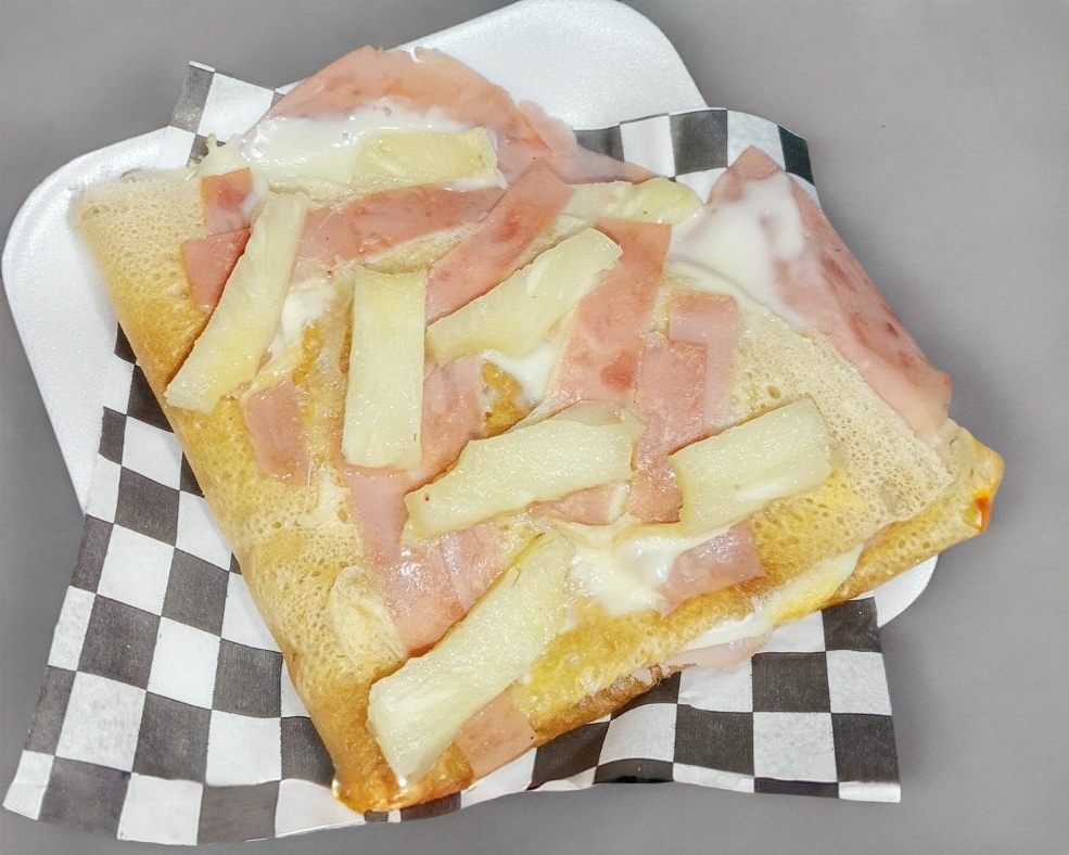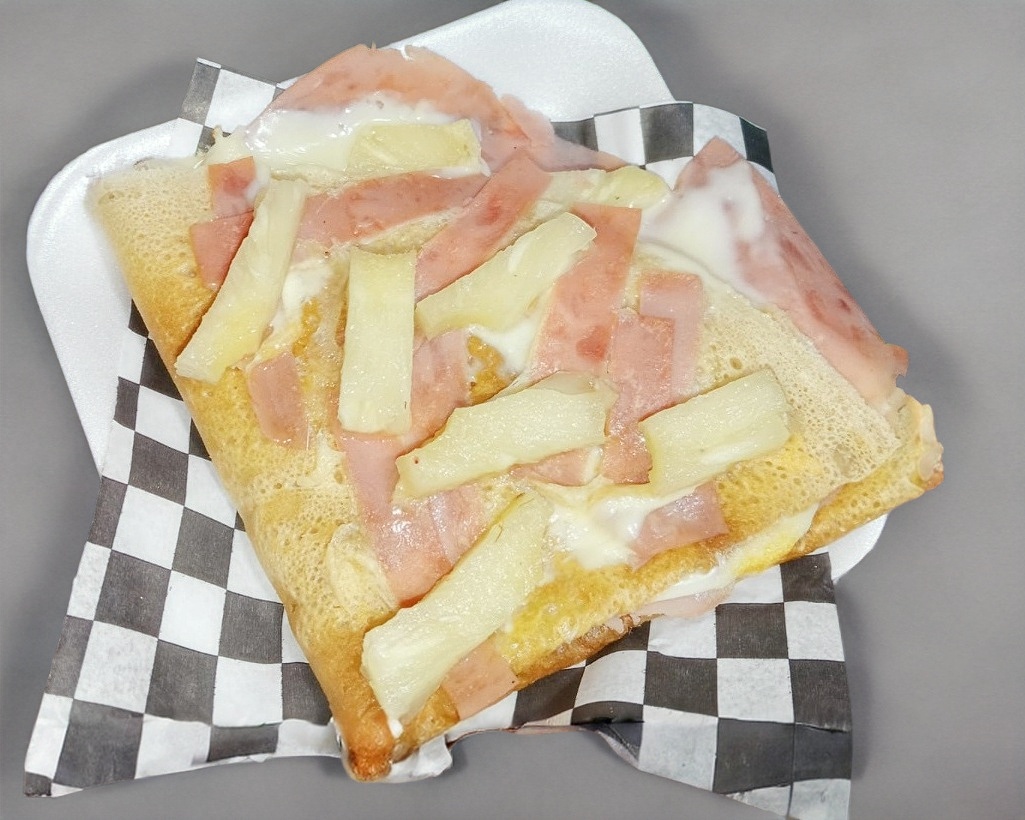 Queso oaxaca, queso manchego, jamon y piña