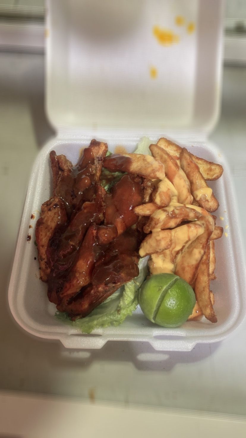 Orden de 5 pzas de boneless con orden chica de papas a la francesa.