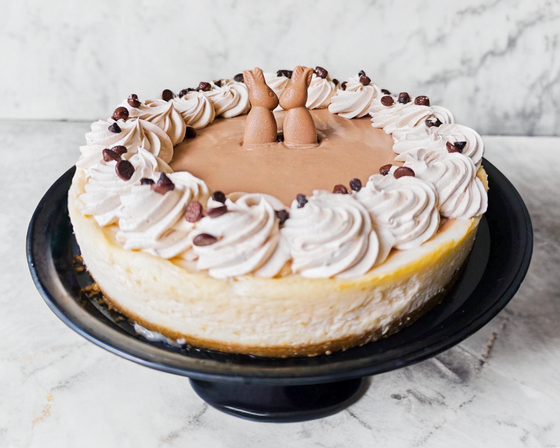 Rebanada de Cheesecake elaborada con chocolate de conejito Turin.