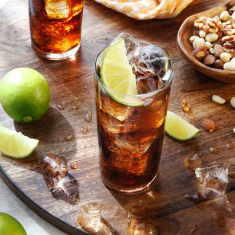 Escarchado de sal y limón, hielos, jugo de limón, 2 oz. De Bacardi blanco y Coca-Cola