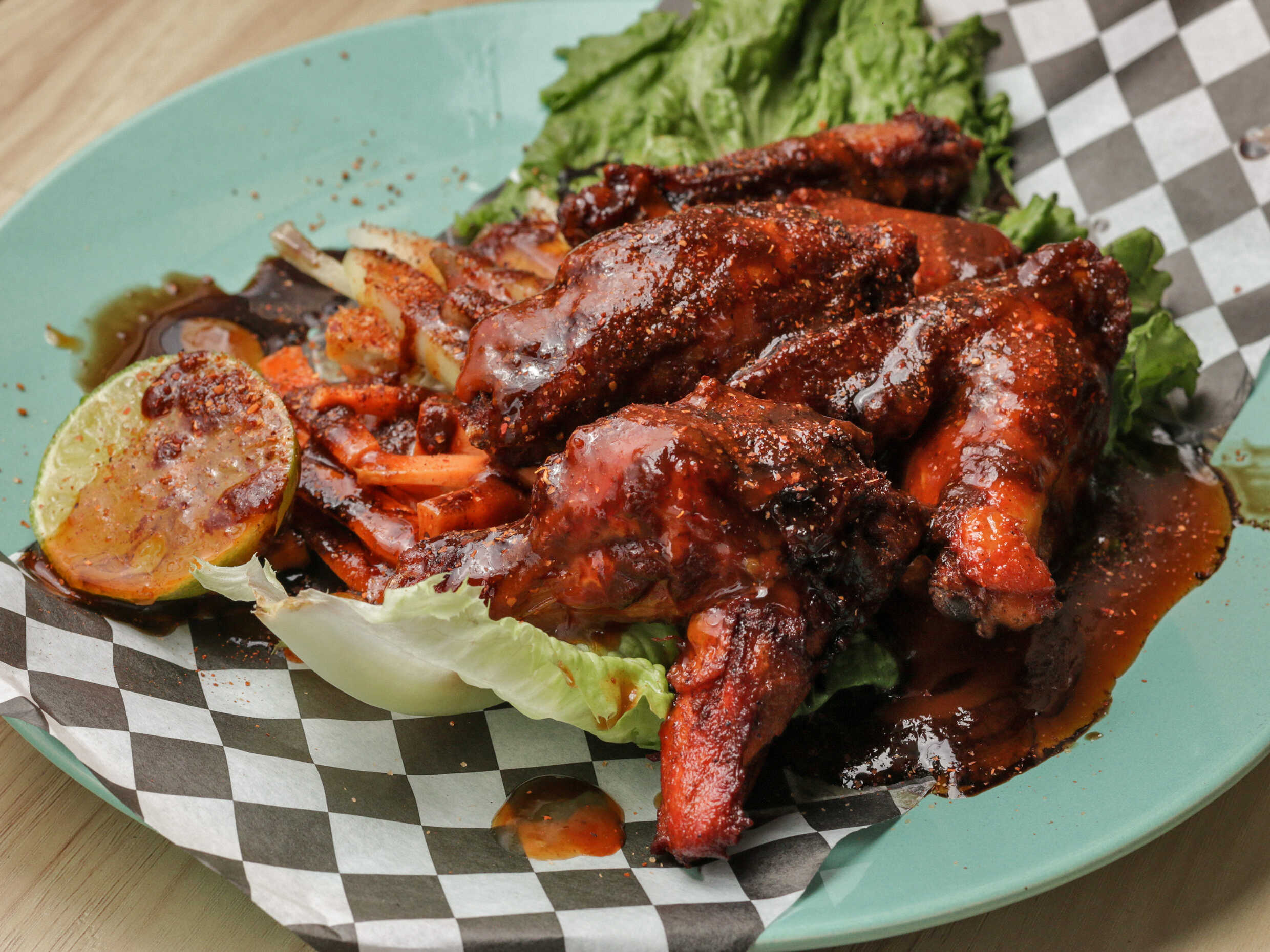 4 Piezas de alitas con magui, inglesa, valentina, búfalo y tajín.