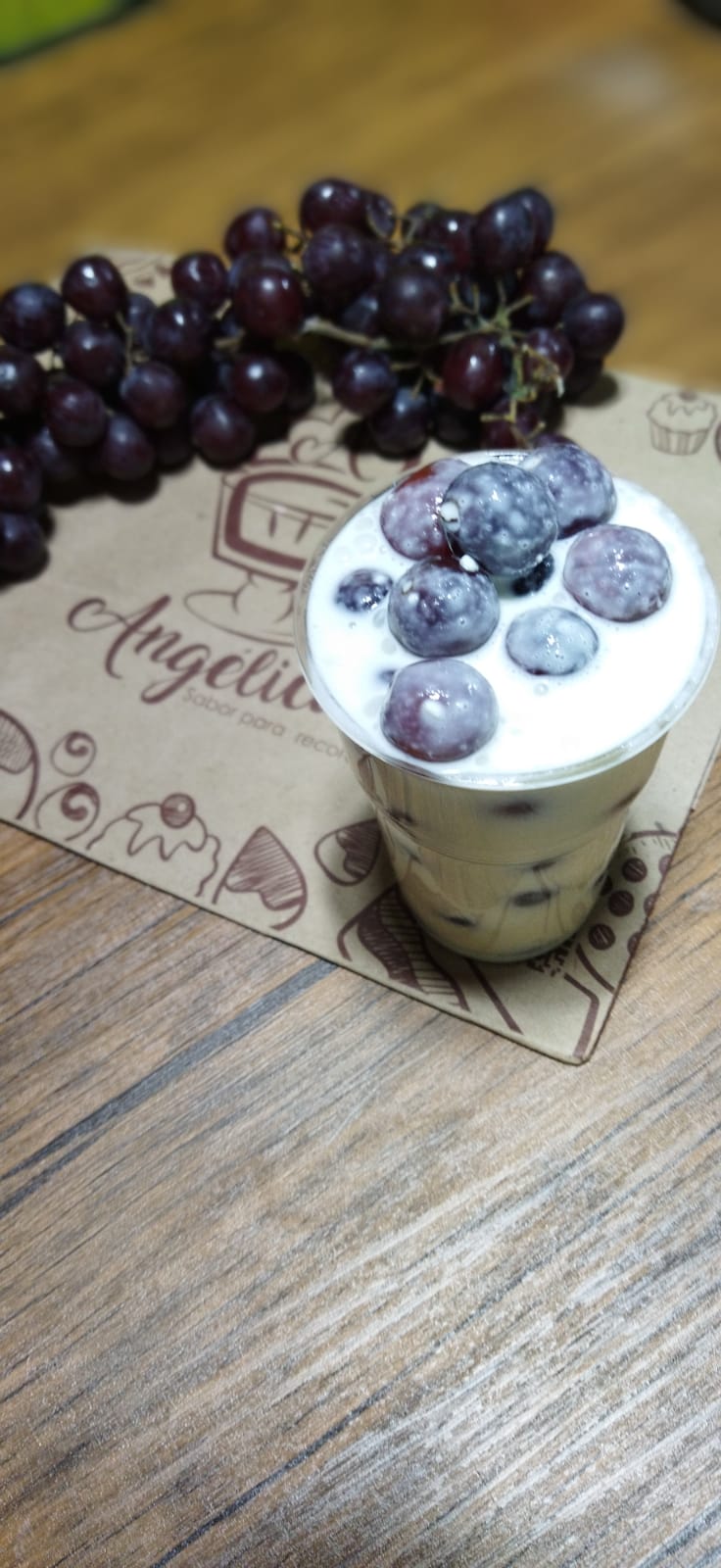 Vaso de 12 onz, uvas frescas acompañadas de queso cottage bañadas de crema natural
