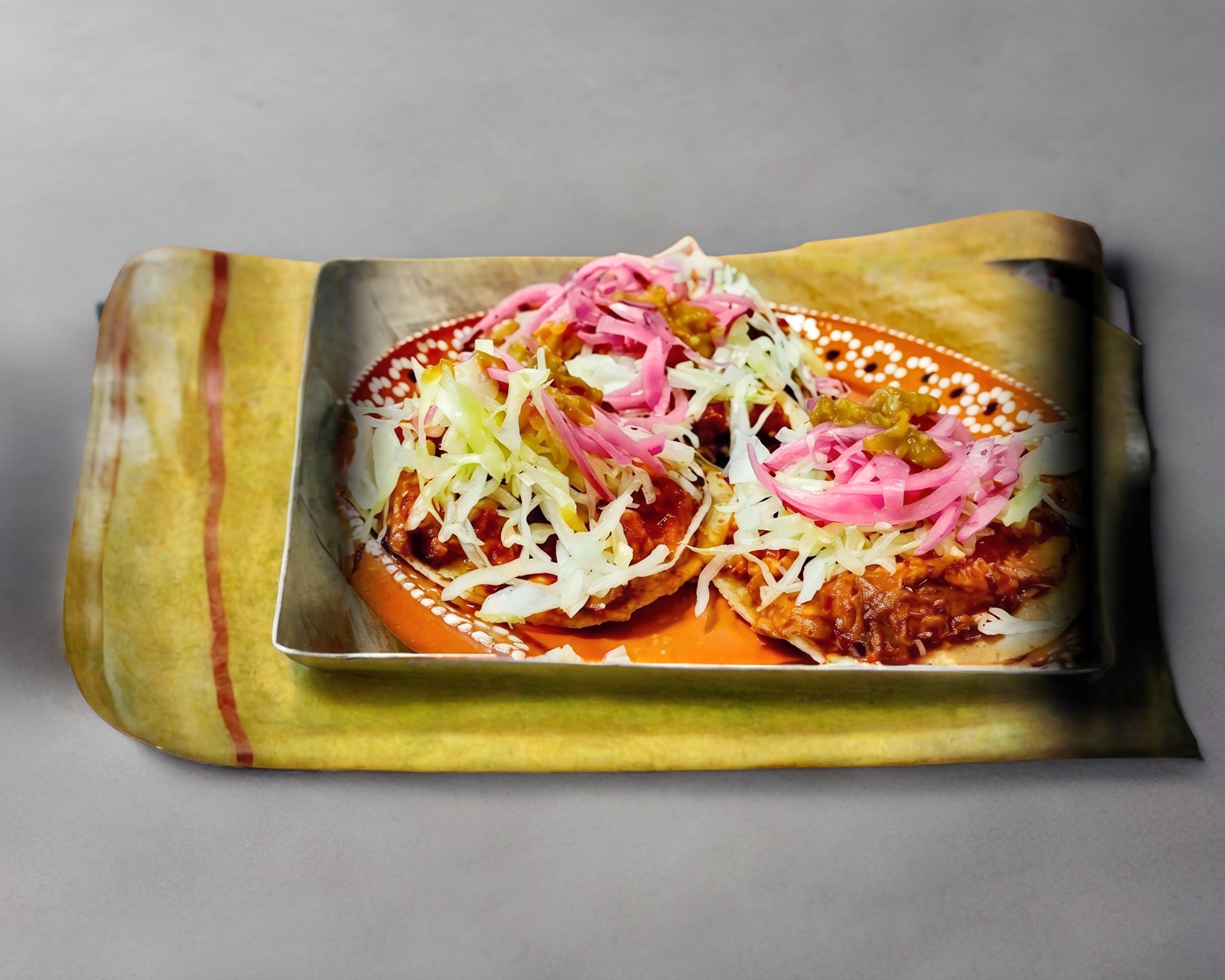 1 Taco de cochinita pibil acompañado de cebolla morada y salsa de habanero.