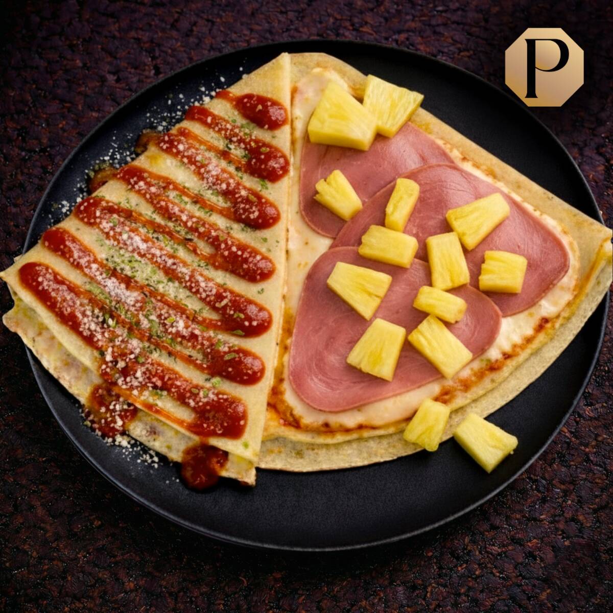 Descubre el paraíso en cada bocado con nuestra crepa hawaiana. Delicioso Jamón, piña, Queso Manchego y queso Mozzarella se combinan en una crepa, creando una explosión de sabores tropicales que te transportarán directamente a la playa. ¡No esperes más para probar esta delicia!