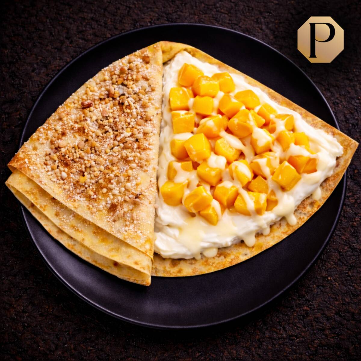 ¡Descubre el sabor insuperable de nuestra crepa Presidente Dulce, la especialidad de la casa! Deléitate con una combinación exquisita de Fresa, Uva, Plátano, Durazno, Nutella, Philadelphia y Lechera con topping y decoración que te encantara. Todo esto envuelto en una crepa suave y dorada. ¡Pídela y pruébala hoy mismo!