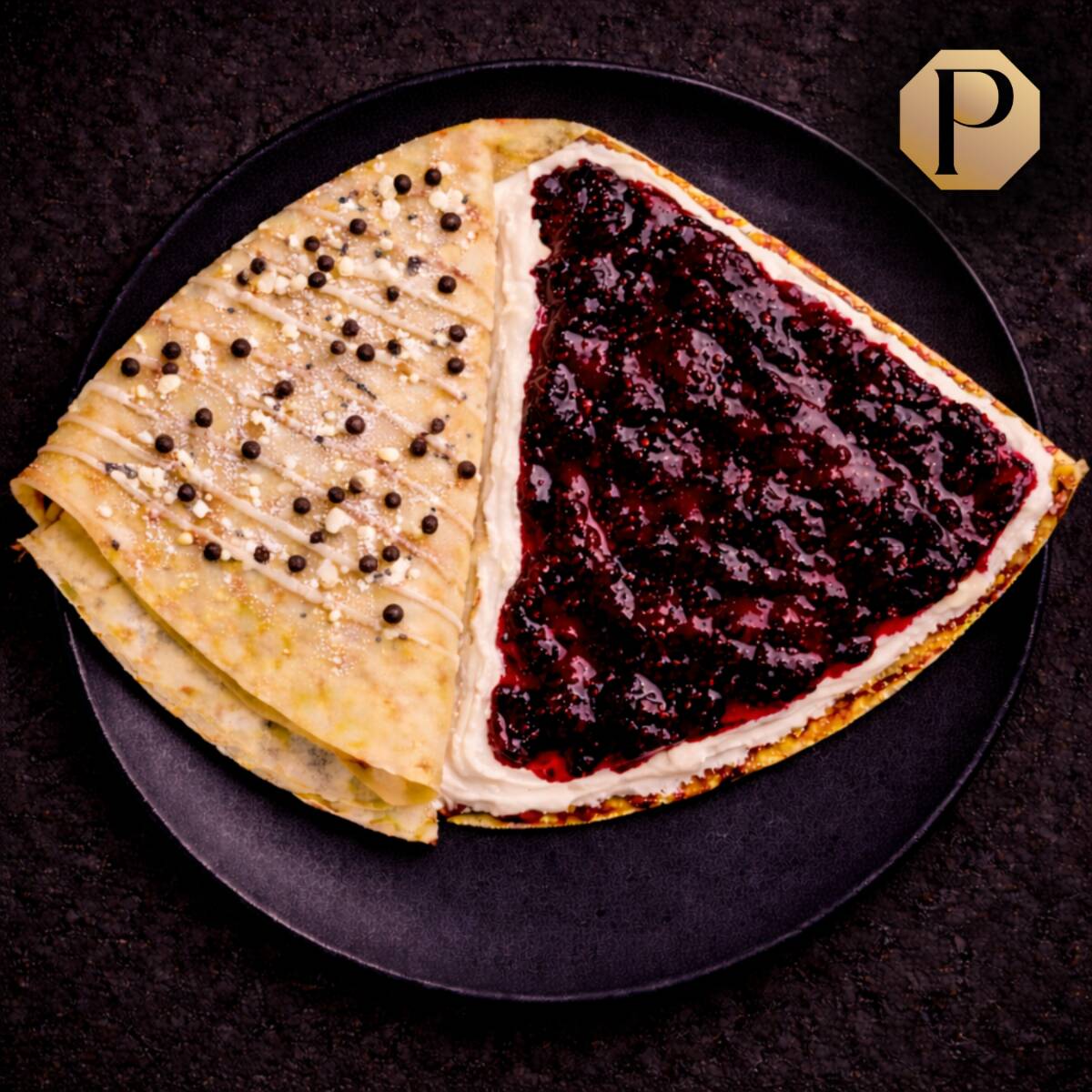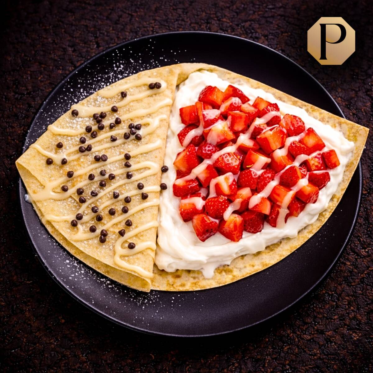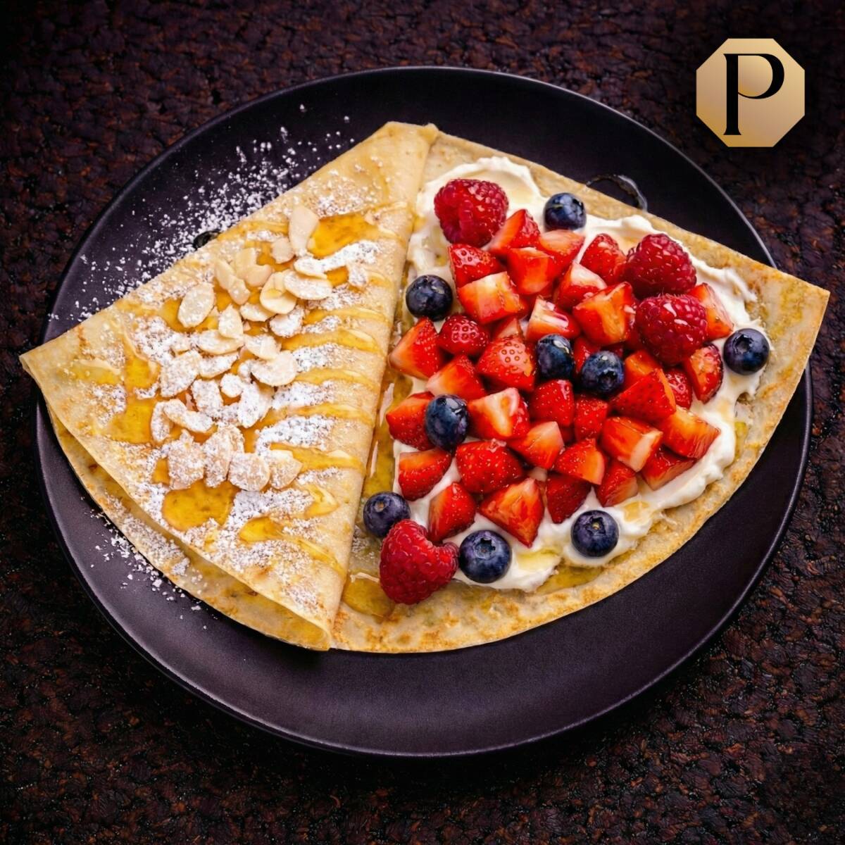 Disfruta de una explosión de frescura y sabor con nuestra crepa de frutos rojos. Rellenamos nuestra crepa con Miel, Queso Philadelphia, fresas frescas, frambuesas jugosas y blueberry, añadiendo una mezcla perfecta de dulzura y acidez complementado con el Topping y Decoracion de tu elección. Cada bocado es una experiencia vibrante que deleitará tus papilas gustativas.