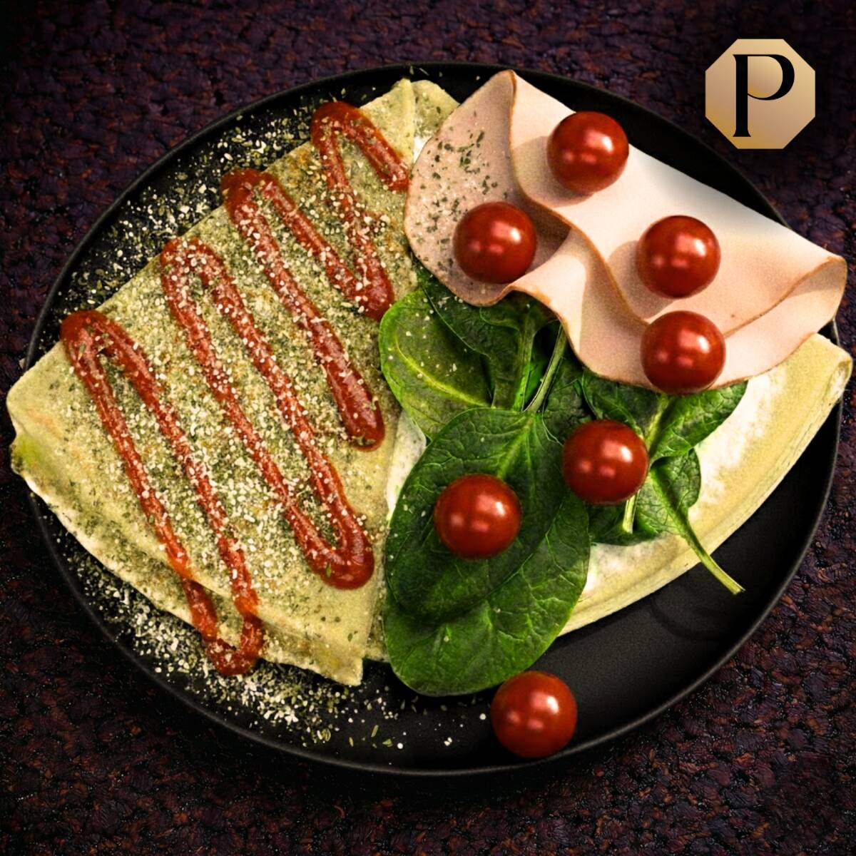 Deléitate con la frescura y el sabor de nuestra crepa de espinacas. Rellenas de espinacas frescas y complementadas con queso Manchego, Philadelphia, Jamón y jitomate cherry esta creación es una explosión de sabores saludables y deliciosos. Descubre la perfecta combinación de verduras y queso en cada bocado.
