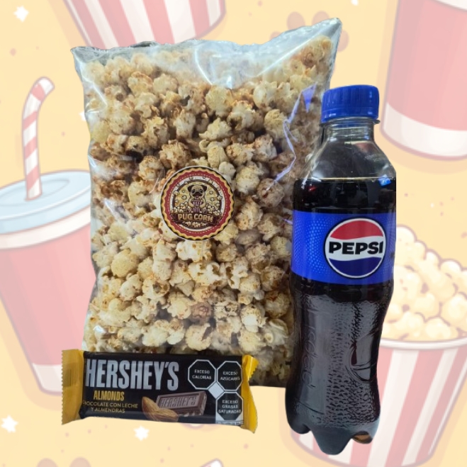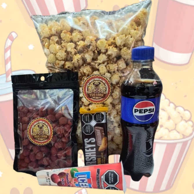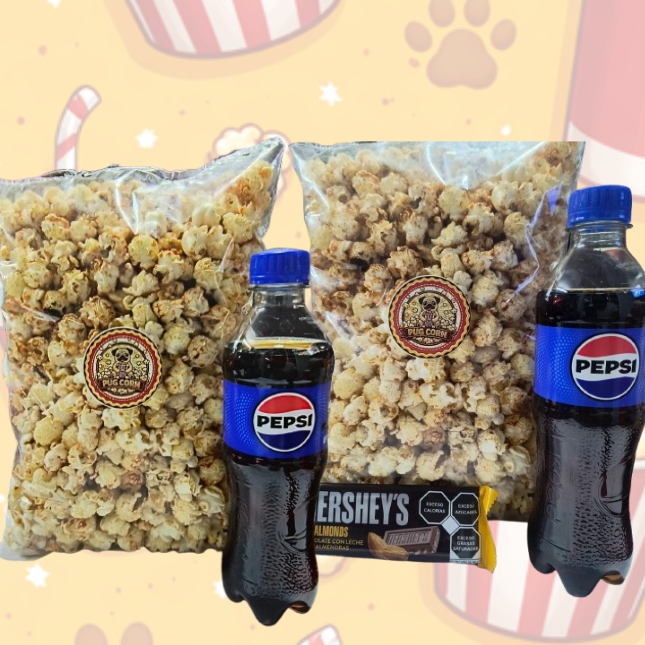 Palomitas Maxi Pug + Bebida + Chocolate + Dulces + Helados