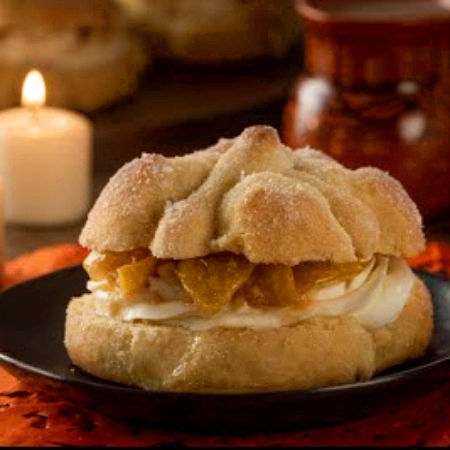 Tradicional Pan de Muerto horneado y con toque de la casa, acompañado del relleno de tu elección