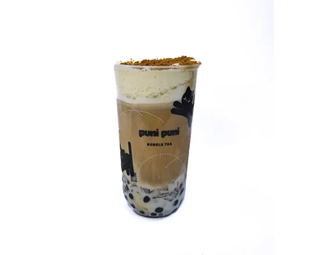 Boba+Jelly de Café, Leche, Shot de Espresso, Foam de Queso Crema o Vainilla y Lotus Espolvoreada