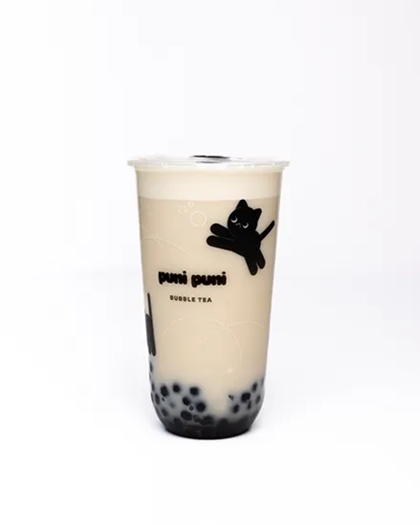 Leche, brown sugar boba, hielo, brown sugar syrup, jarabe de caña y foam de vainilla