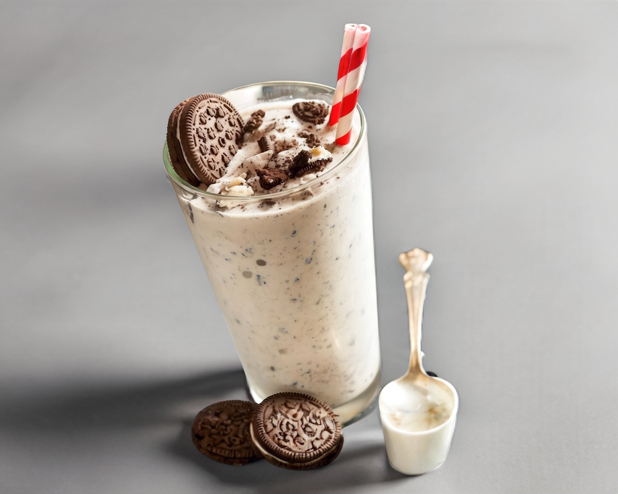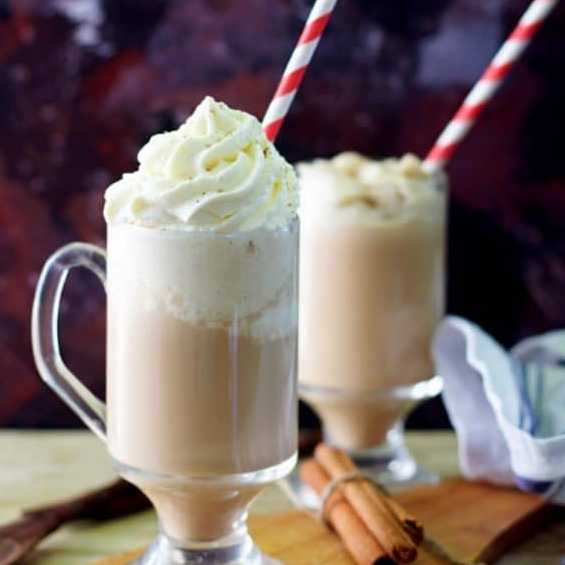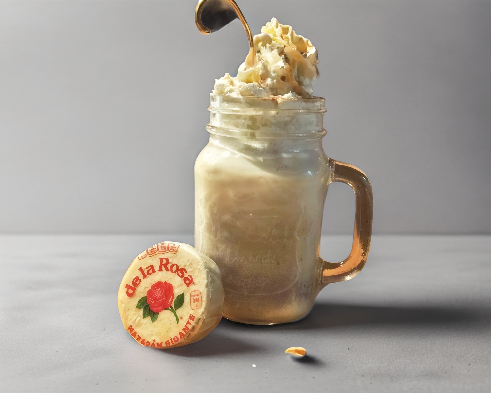 Bebida a base de helado y autentico mazapan, decorada con crema batida
