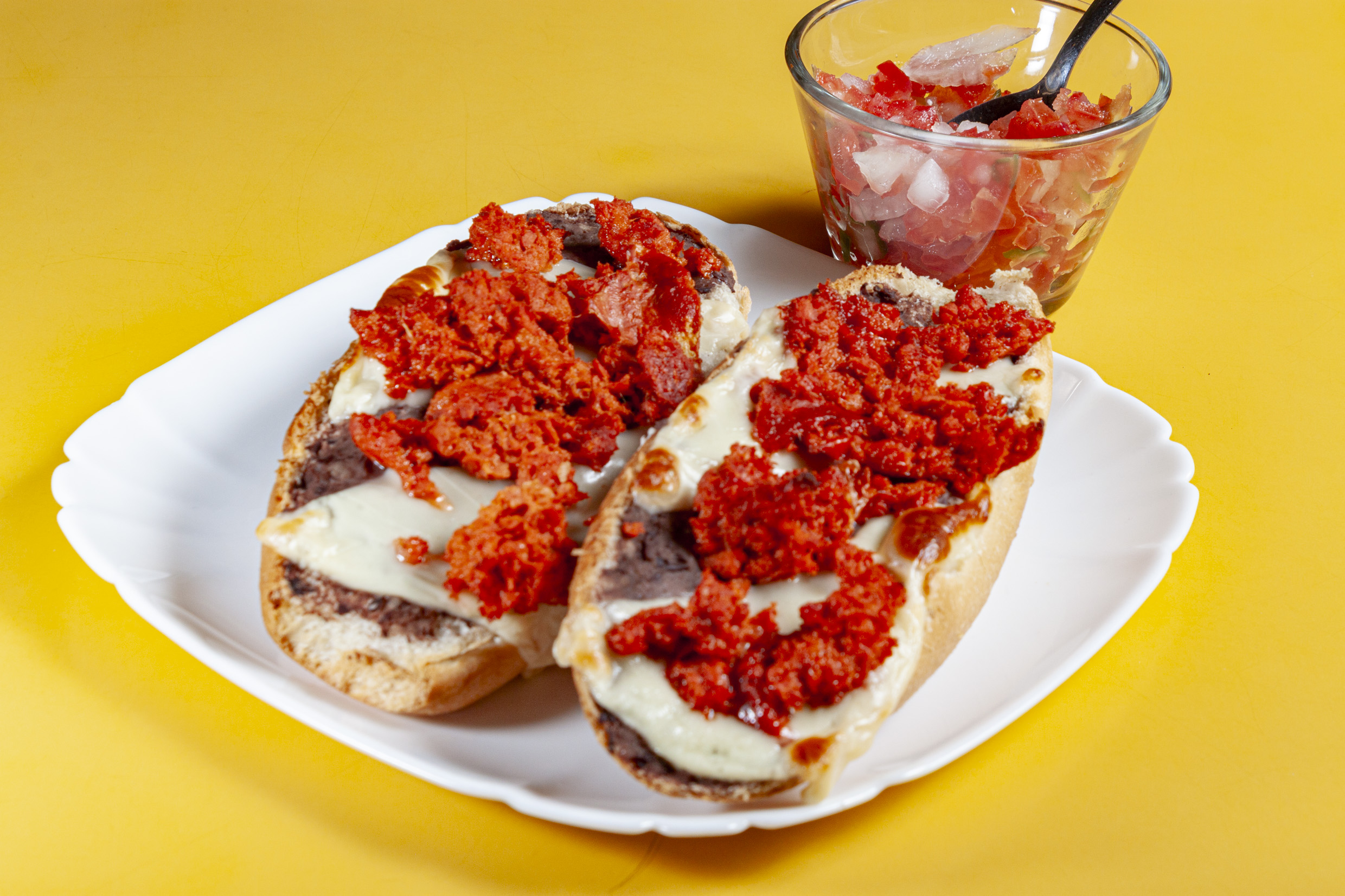 Mediana (frijoles refritos, cebolla, jitomate, chile serrano y chorizo).