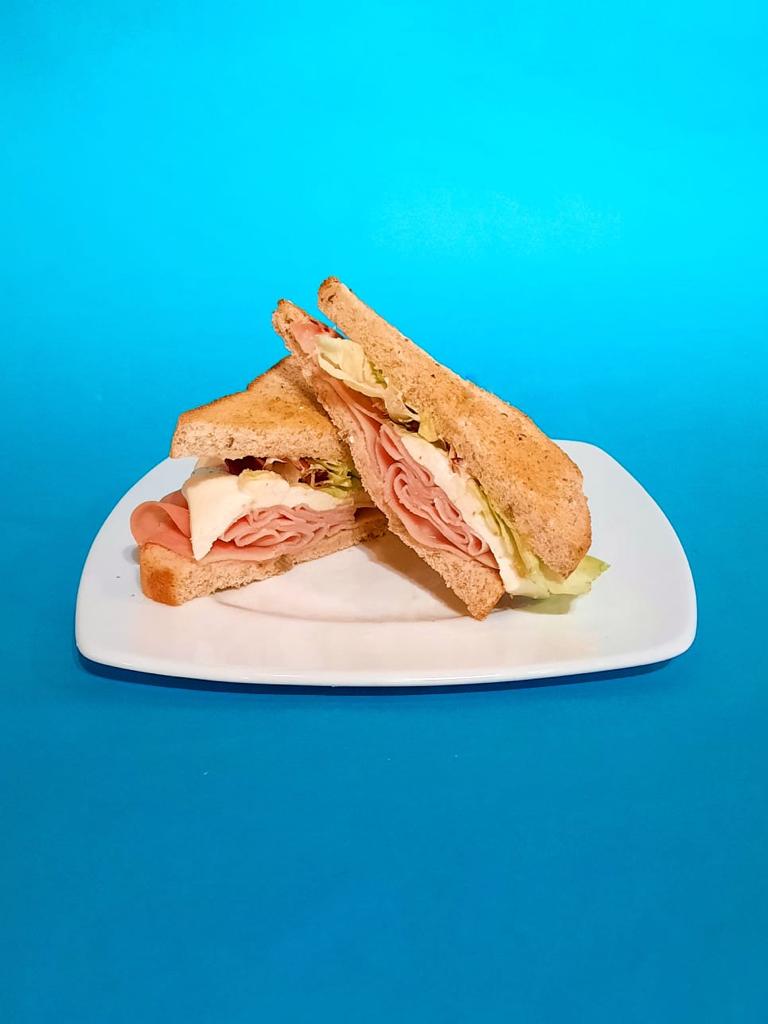 Jamón de pierna, lechuga, queso panela y mayonesa.
