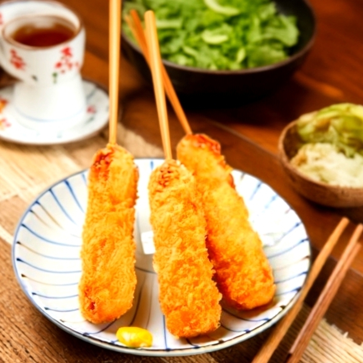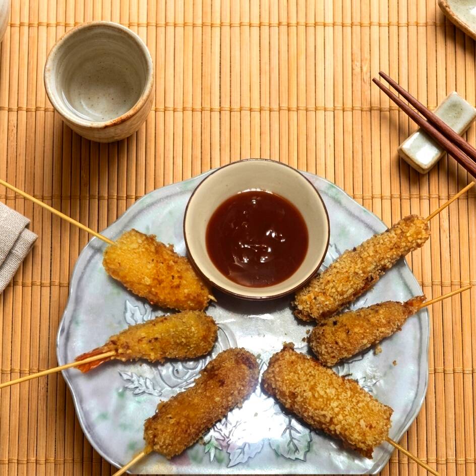 Kushiage Mixtas Camarón, Plátano y Queso 3 Pzas