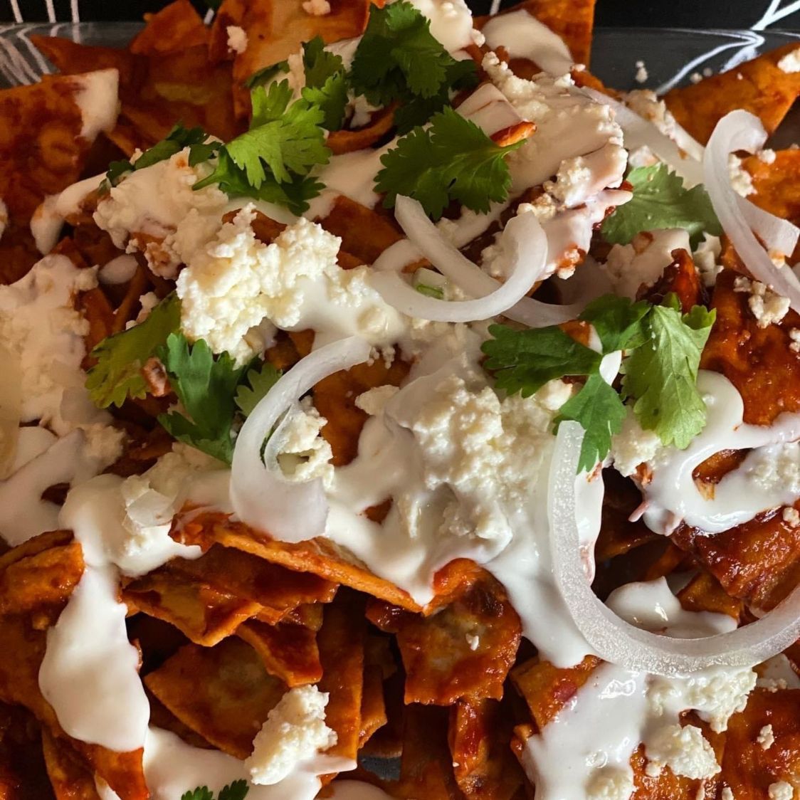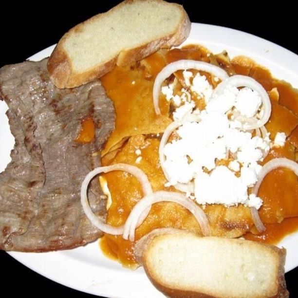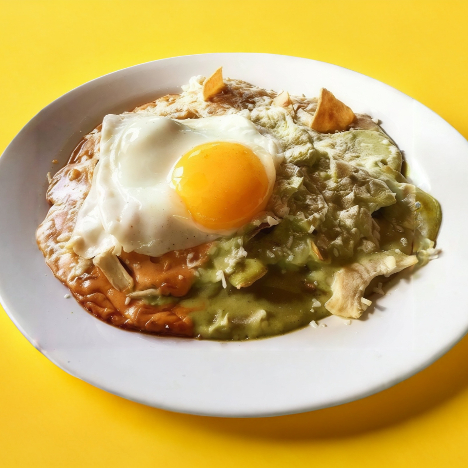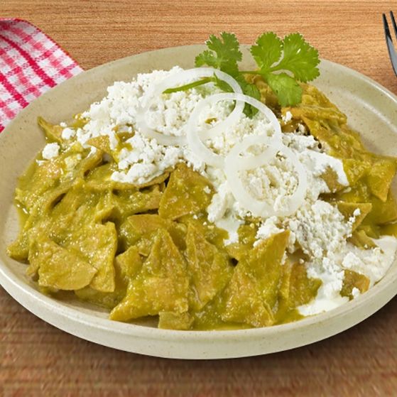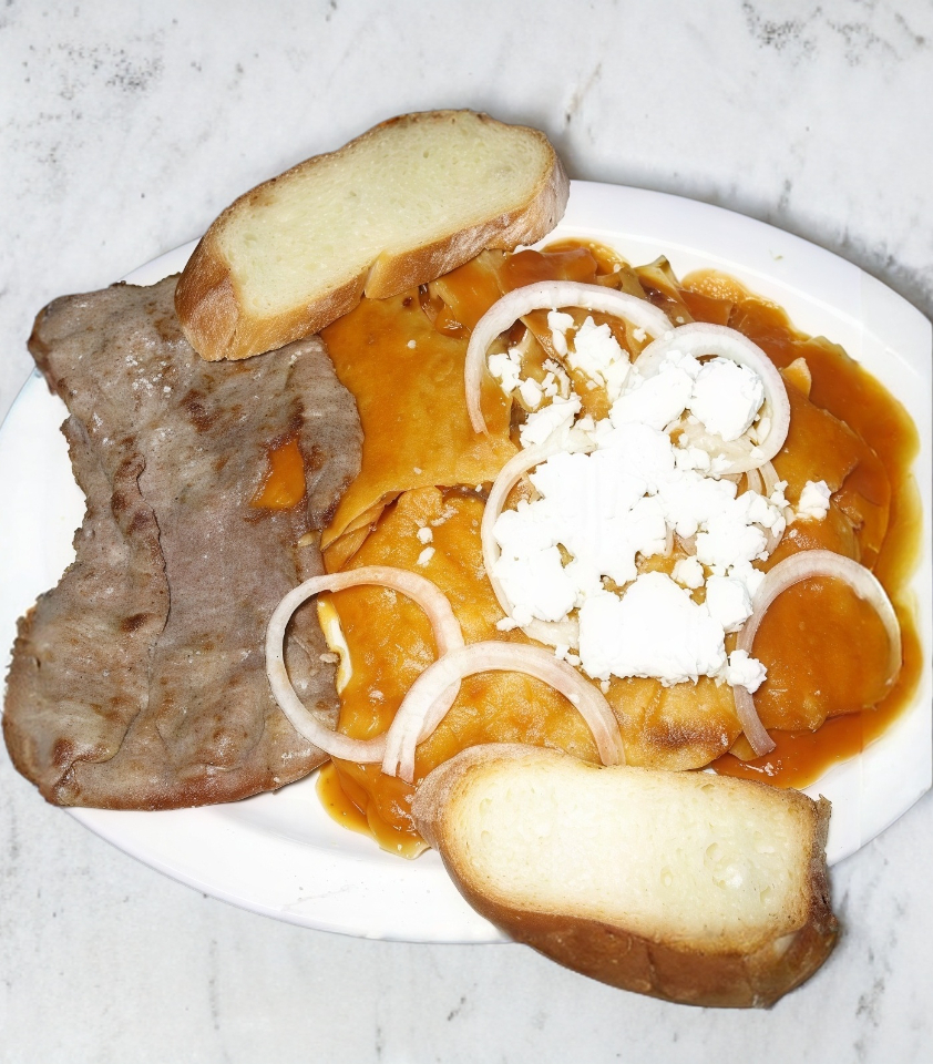 Chilaquiles Verdes con Bistec y Huevo Revuelto