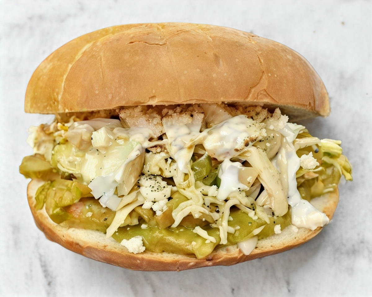 Torta de milanesa con pierna española, jitmate, cebolla y aguacate