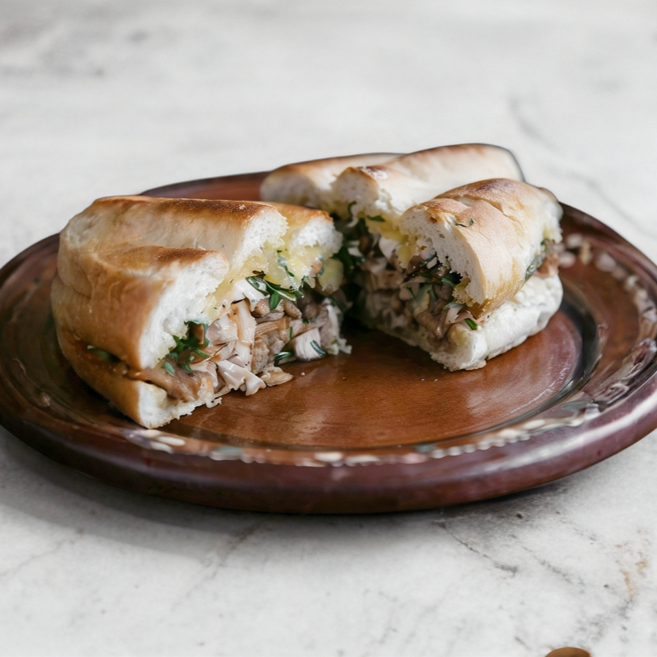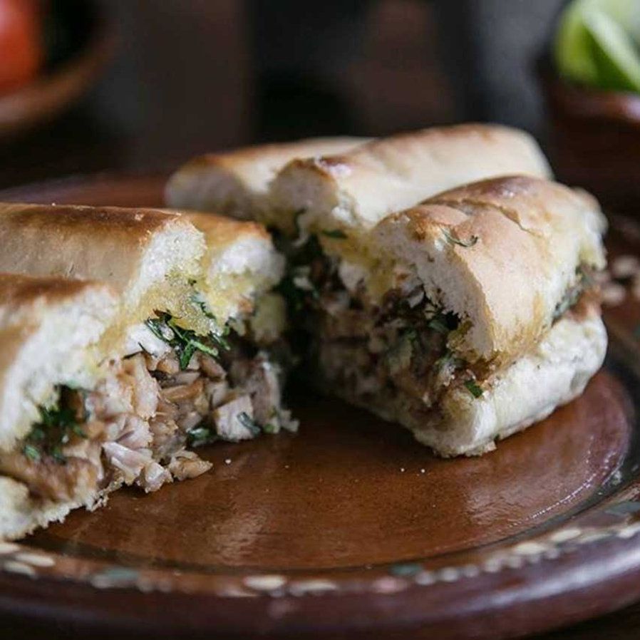 Torta de perna con chorizo, huevo, jitomate, cebolla y aguacate