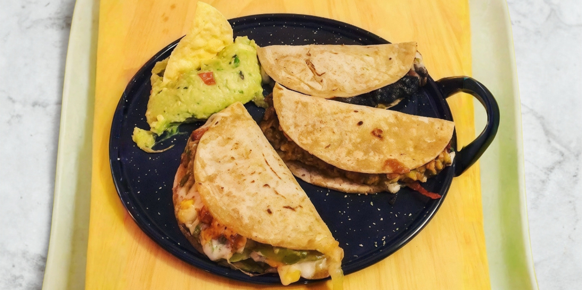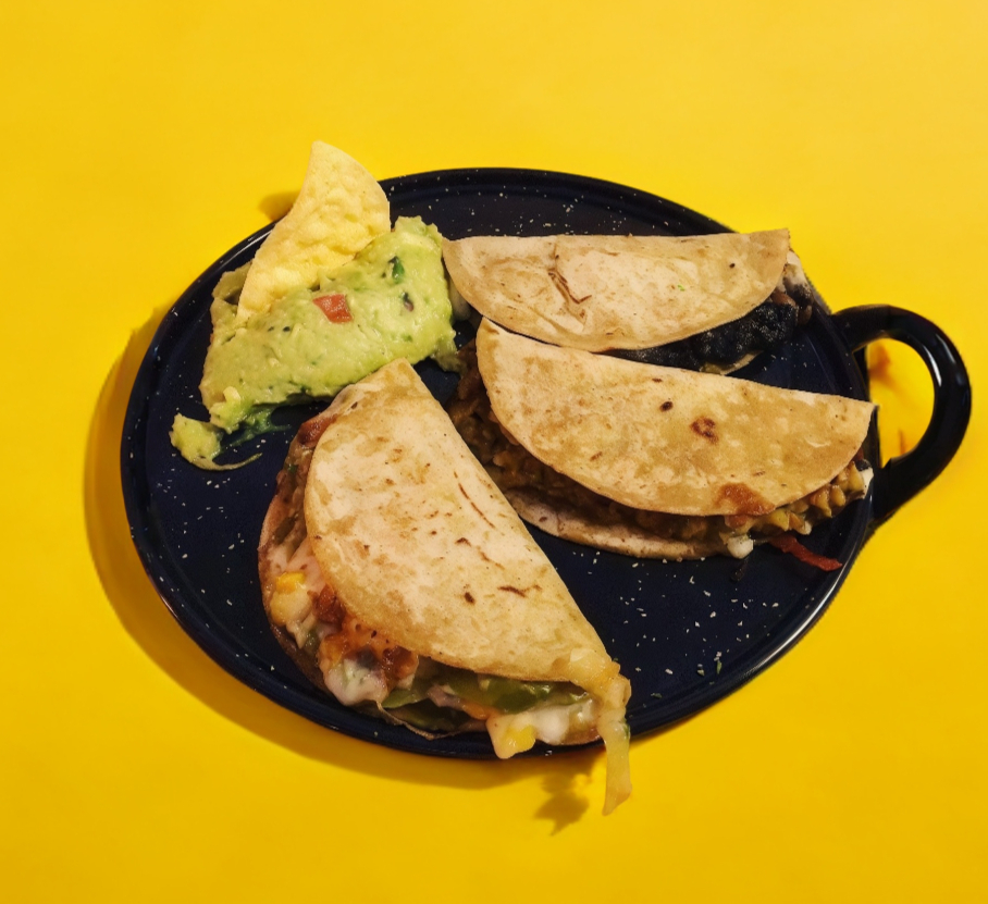 3 Quesadillas con relleno a tu elección, 1 refresco de 500 ml.