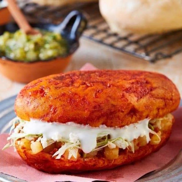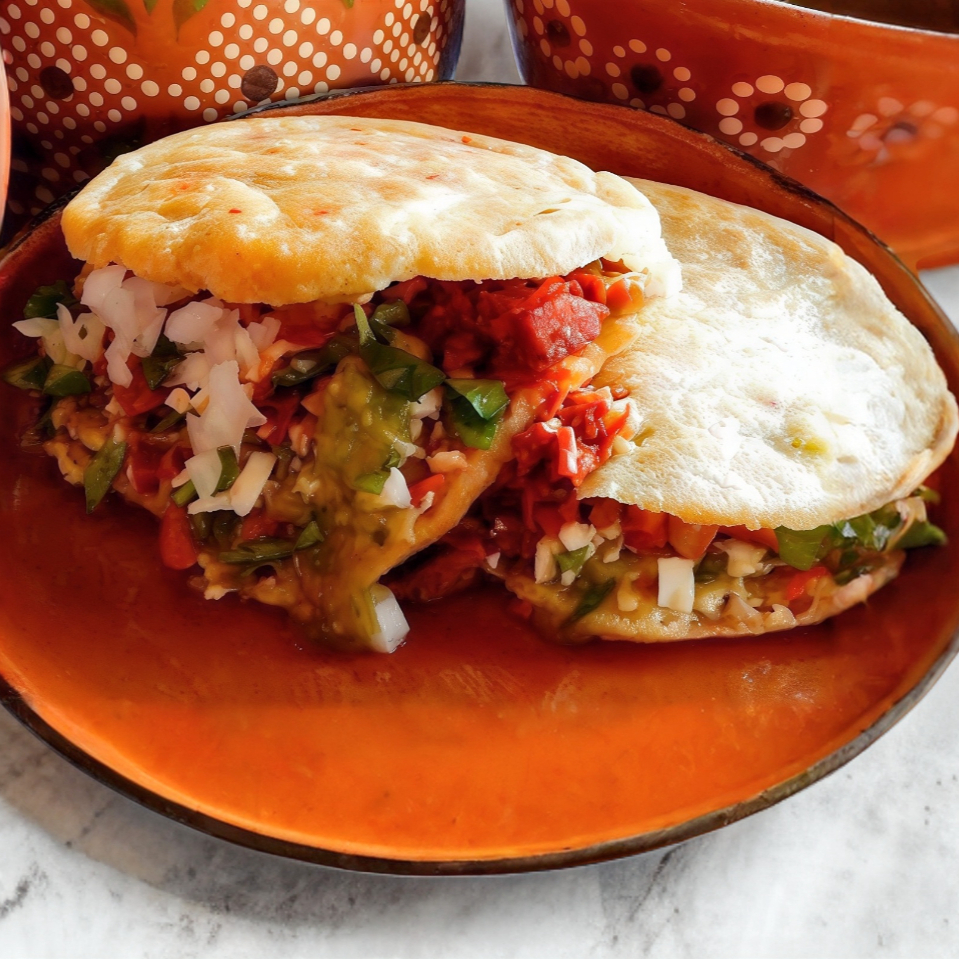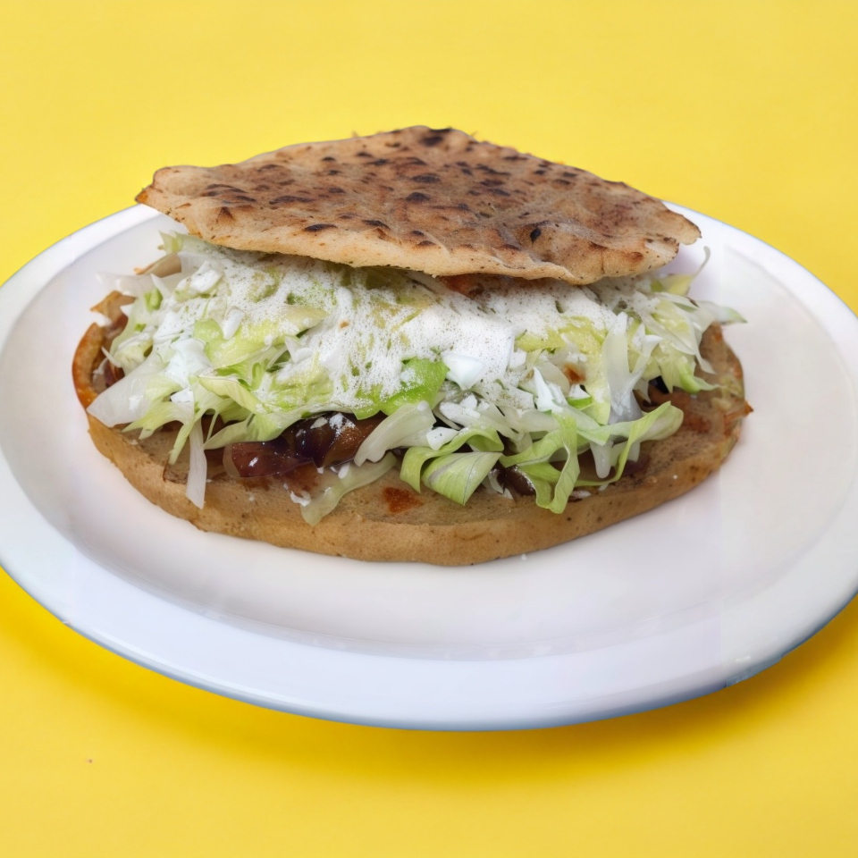 Gordita hecha de masa con relleno de frijol , crema y queso .