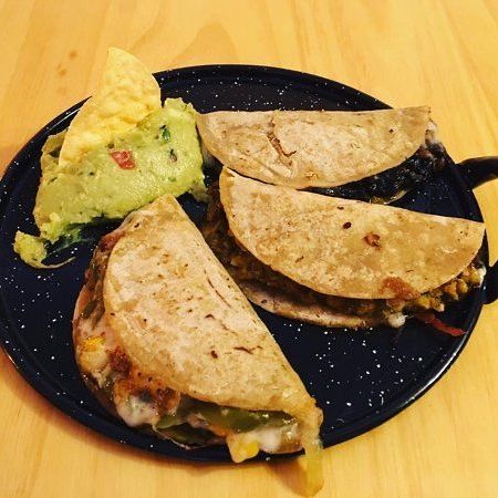 QUESADILLA RELLENA DE FRIJOLES , CREMA , LECHUGA Y QUESO RALLADO
