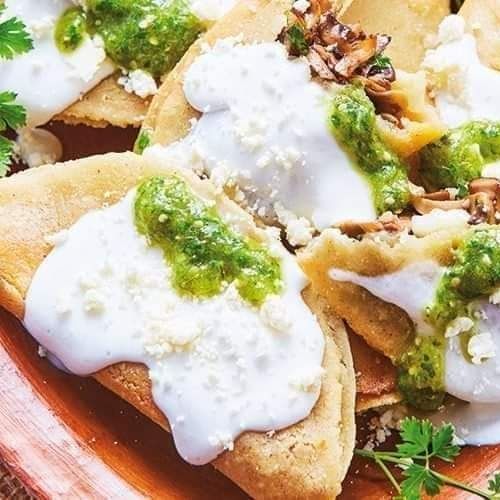 Deliciosa y preparada al momento. con frijoñes refritos, jitomate . cebolla y aguacate
