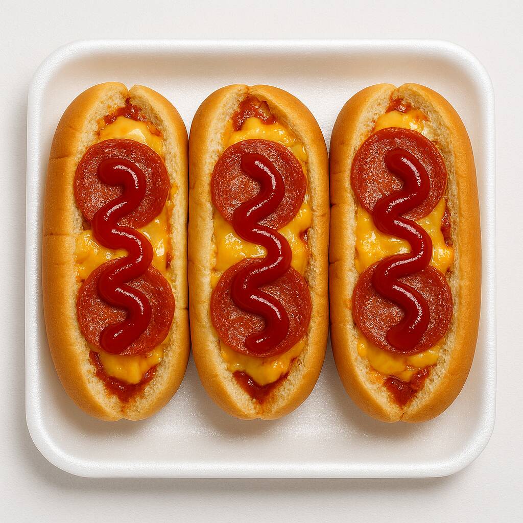 Peperoni, Queso Amarillo, Queso Gouda, Salsa Prego, Catsup, Medias Noches