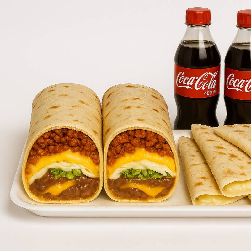 Quesadilla "Queso 3pzs"*1 + Burrito Longaniza*1 + Coca Cola 400 Ml*2