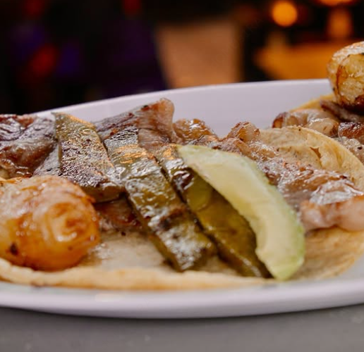 100 g De arrachera, nopalitos, cebollitas cambray y aguacate