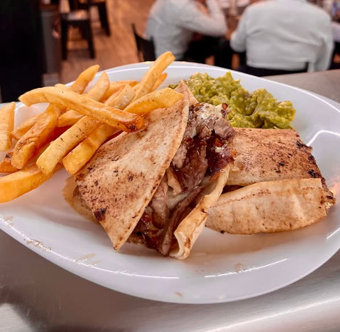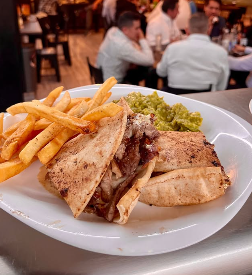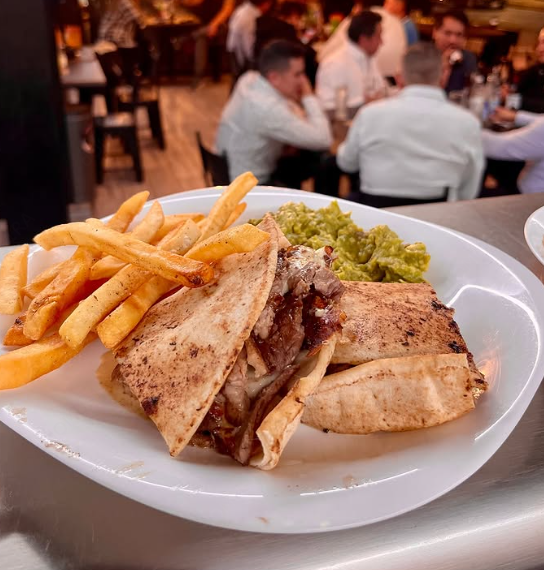 100 g De arrachera, frijoles, queso panela, crema y aguacate.