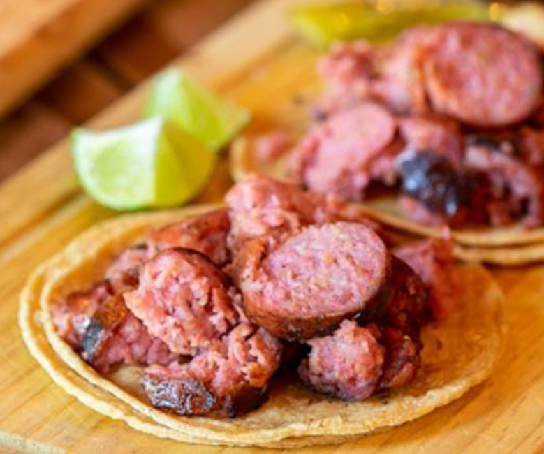 100 g De arrachera, chistorra, rajas de chile cuaresmeño, y aguacate.