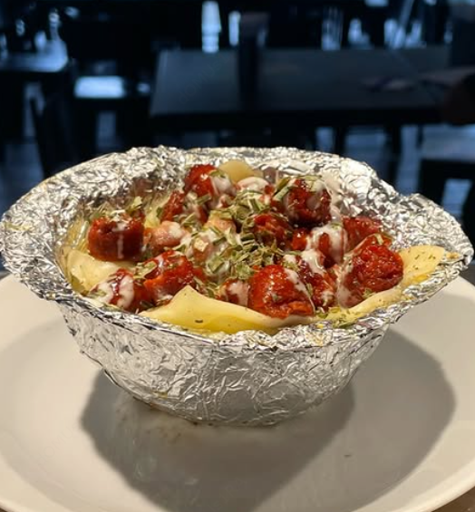 120 g De arrachera, tocino, piña, salsa bbq, queso suizo y bollo brioche. Incluye porción de papas a la francesa.