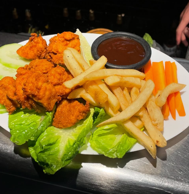 200 g De pechuga empanizada, lechuga, espinaca, crutones, queso parmesano, tocino.