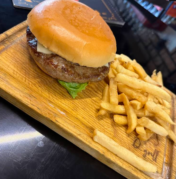 240 g De arrachera, lechuga, jitomate, cebolla, queso suizo y bollo clasico. Incluye porción de papas a la francesa.