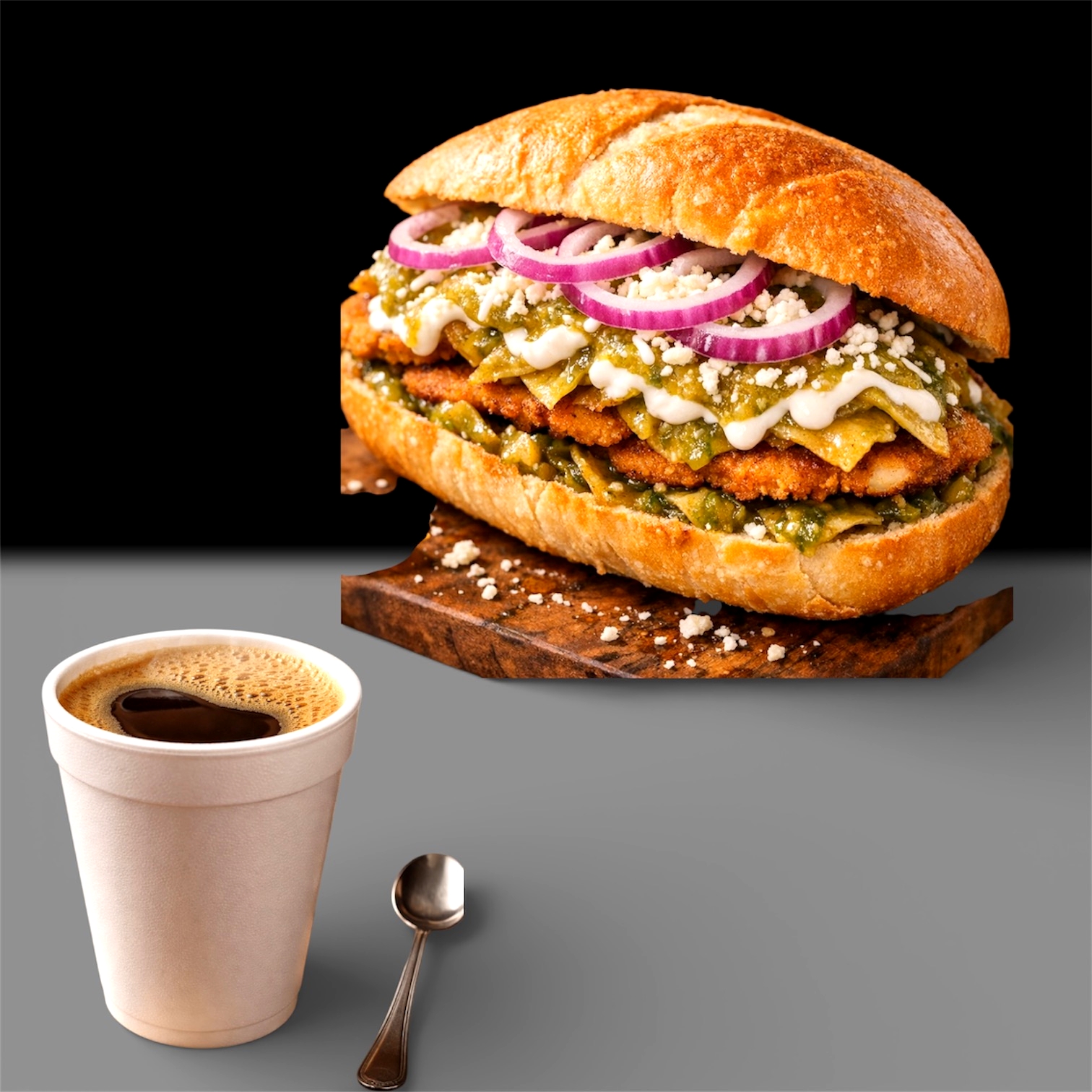 Torta de Chilaquiles Milanesa*1 + Cafe con Crema*1