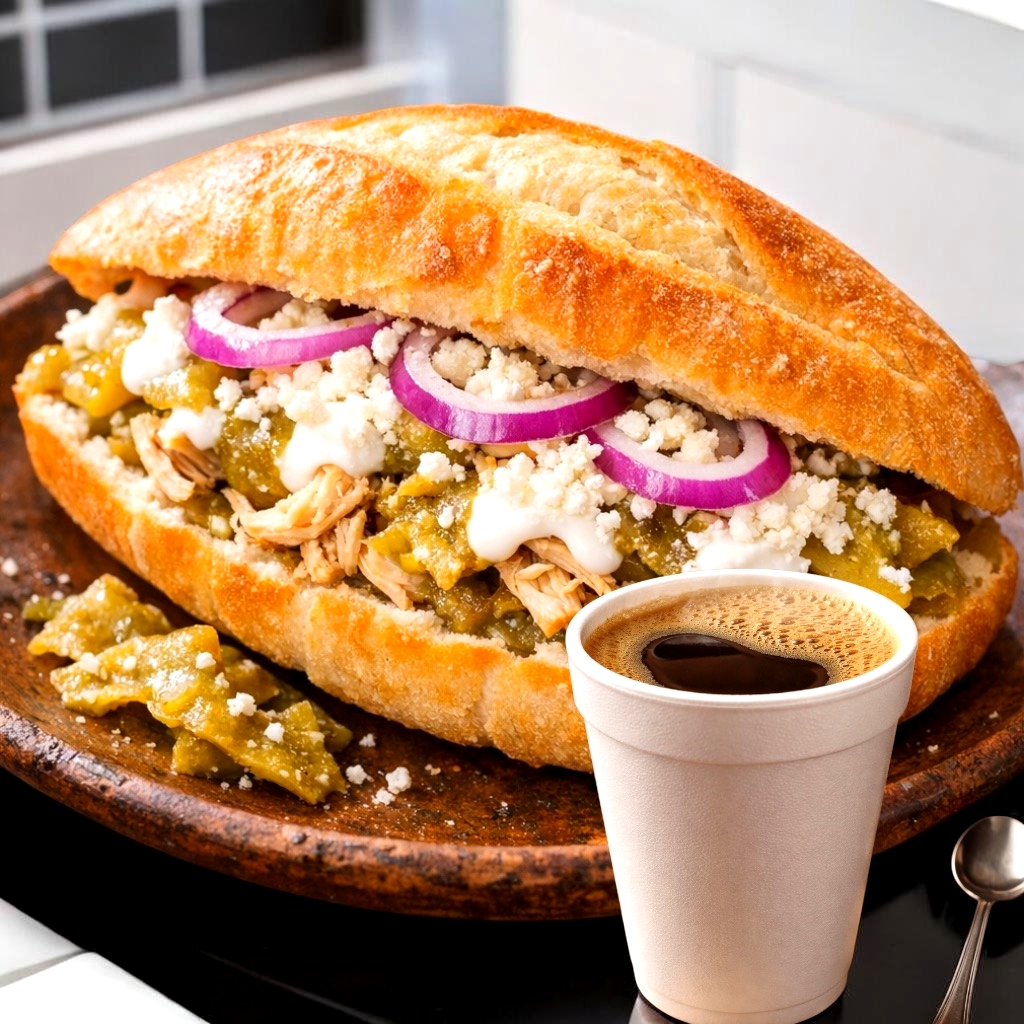 Café de Olla*1 + Torta de Chilaquiles y Pollo*1