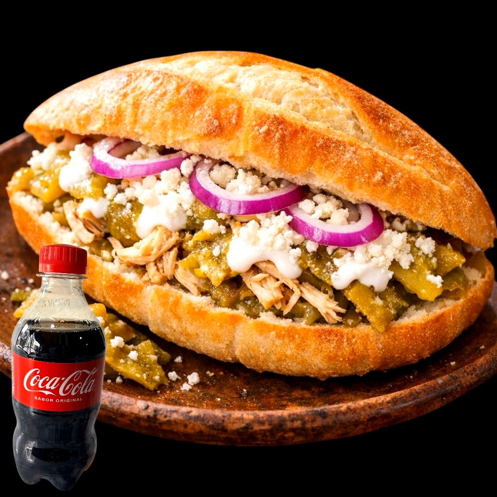 Coca Cola*1 + Torta de Chilaquiles y Pollo*1