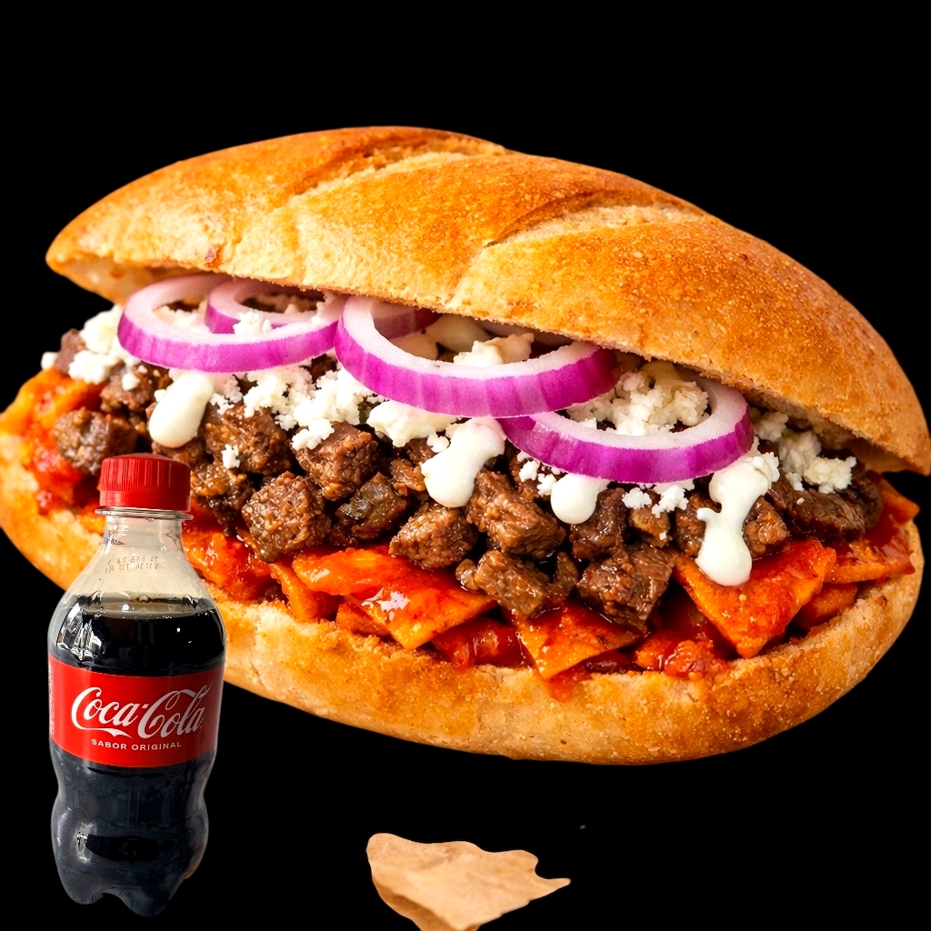 Coca Cola*1 + Torta de Chilaquiles con Bistec*1